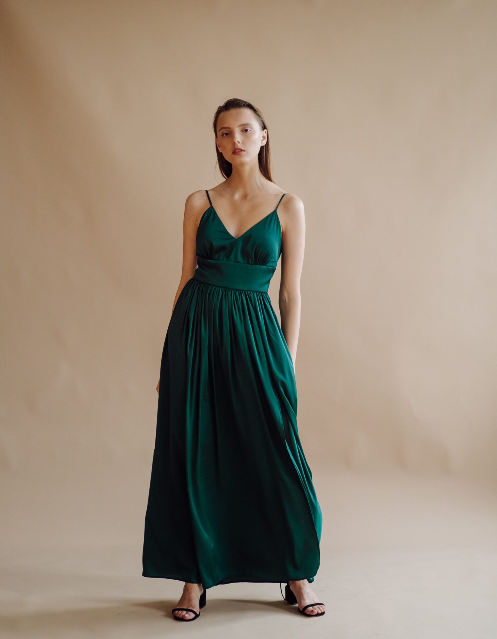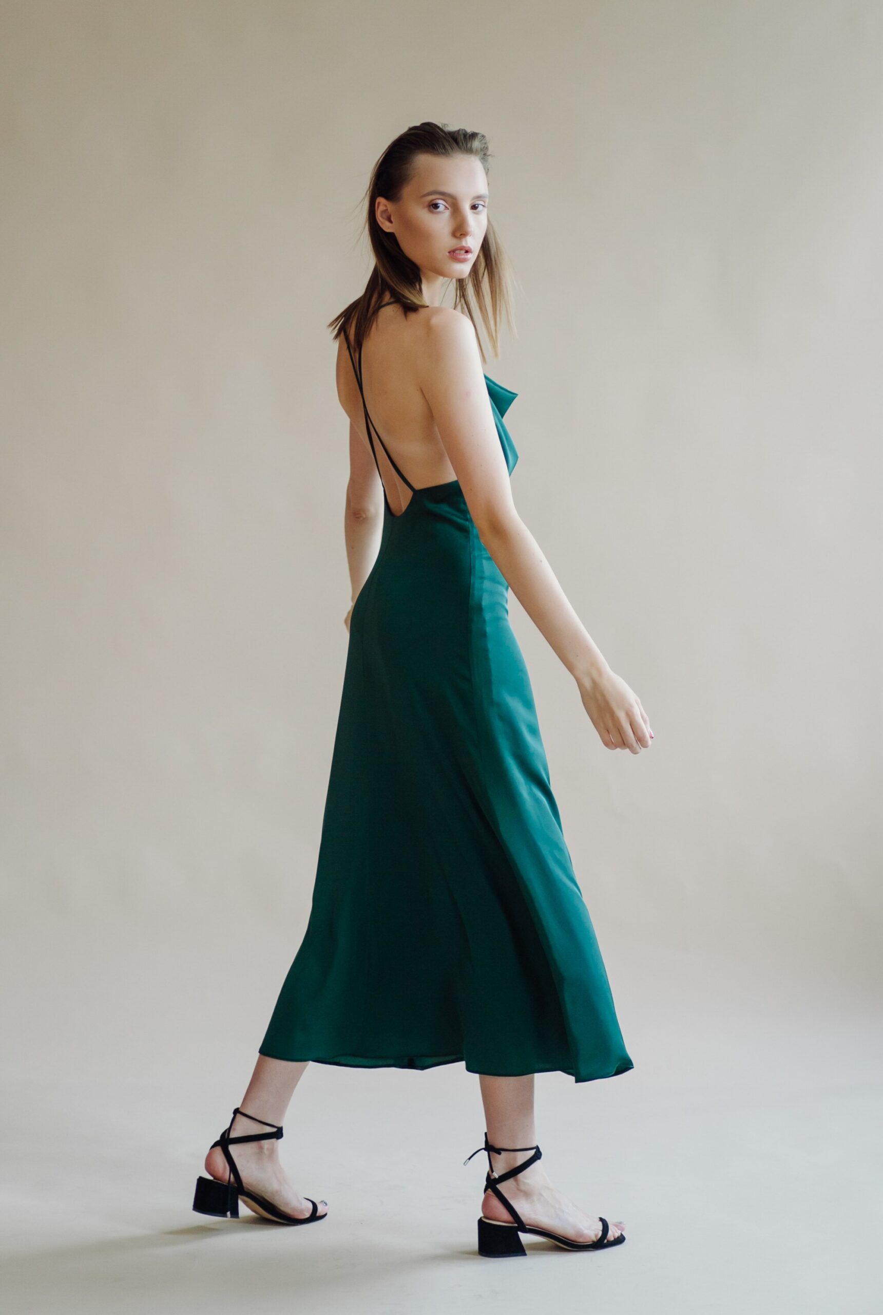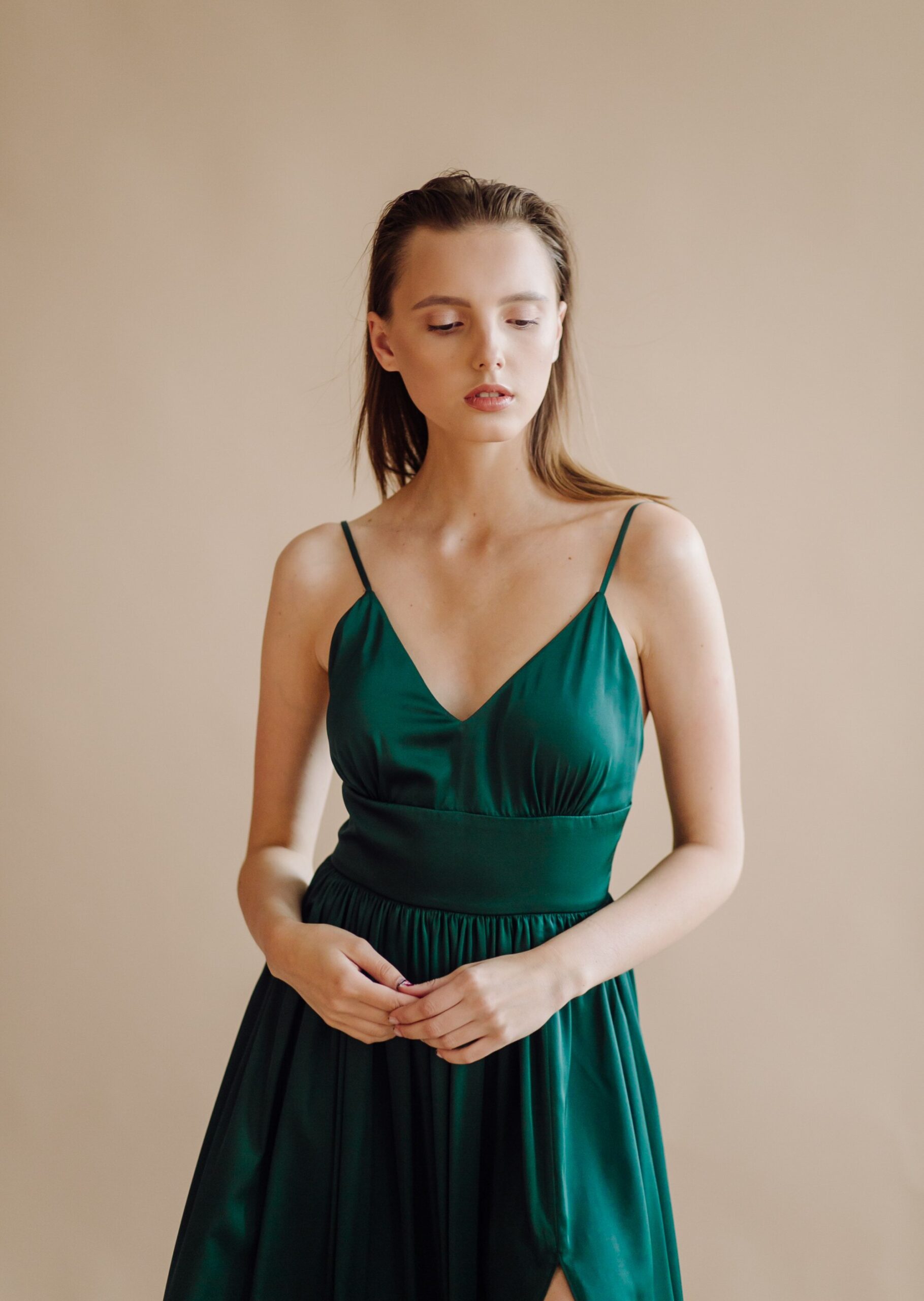 トレンド感のある深Vネックがシャープな印象。顔周りをすっきりと見せ大人の魅力を引き出すワンピース。合わせるトップス次第で、カジュアルからレディな着こなしにと、様々な表情が楽しめる1着。